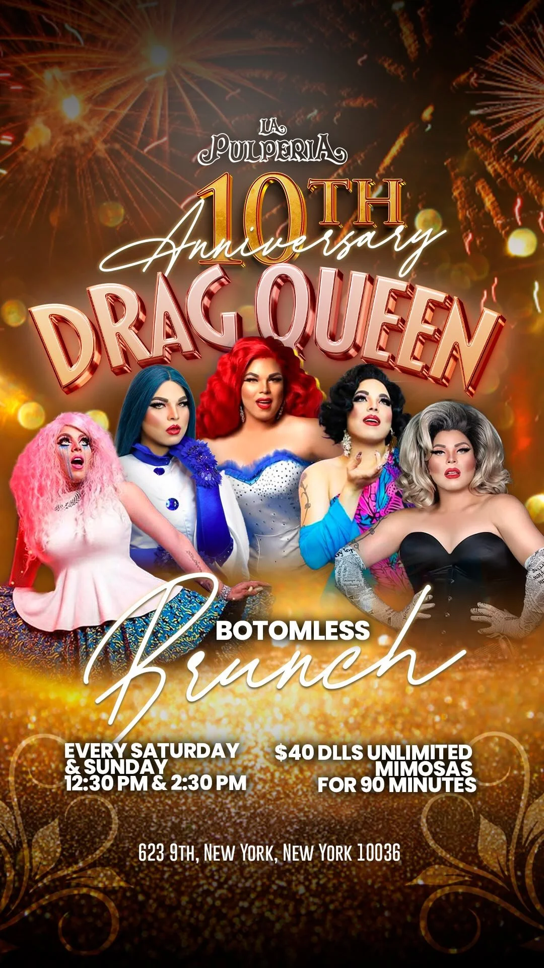 Shows run at 12:00 PM and 2:30 PM every Saturday and Sunday. Whether you’re celebrating a birthday, gathering with friends, or just looking for the best brunch in Hell’s Kitchen — Pulperia is the place to be.